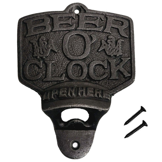 Large Cast Iron Beer O'clock Bottle Opener And Sign