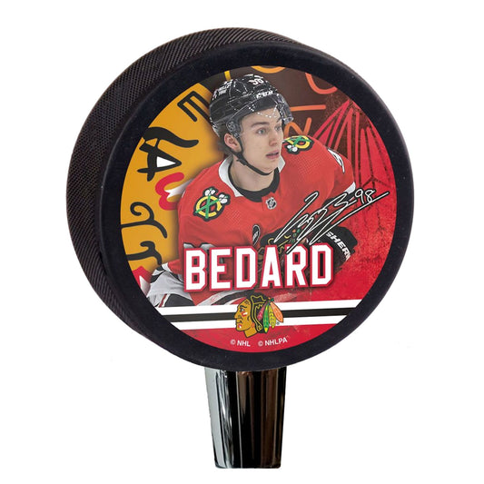 Chicago Blackhawks Conner Bedard Player Series Hockey Puck Beer Tap Handle