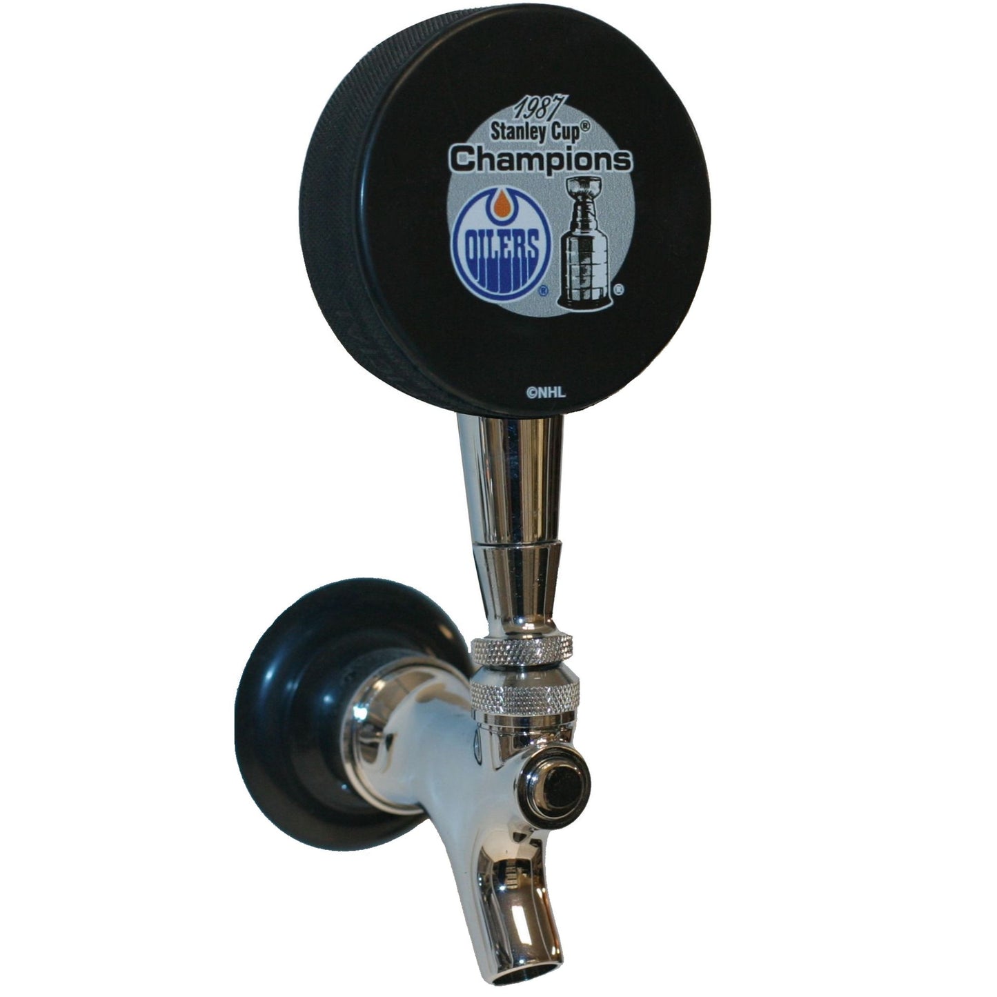 1987 Edmonton Oilers Stanley Cup Champions Hockey Puck Beer Tap Handle. Take pride in serving up your favorite beers with our custom beer tap handle. Handcrafted in the USA from an actual licensed collectible hockey puck. Even if you don't have a beer dispensing system or kegerater, it makes a unique and wonderful gift for hockey fans!