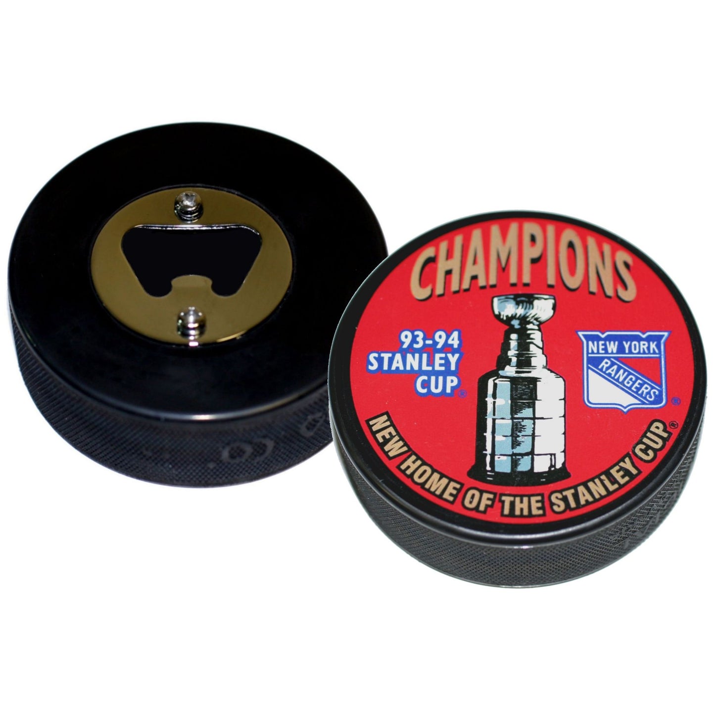 1994 New York Rangers Stanley Cup Champions Hockey Puck Bottle Opener. Take pride in serving up your favorite drinks with our custom bottle opener. Handcrafted in the USA from an actual licensed collectible hockey puck.