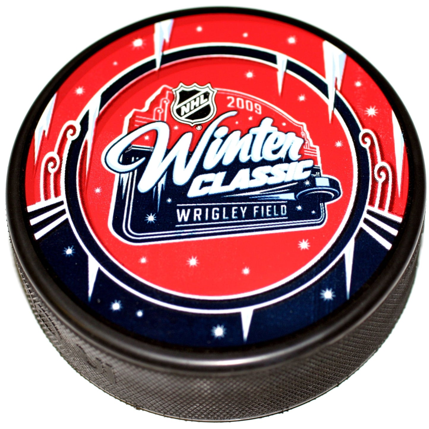 This puck commemorates the 2009 NHL Winter Classic held in Chicago on January first, 2009. It featured the Detroit Red Wings vs the Chicago Blackhawks.