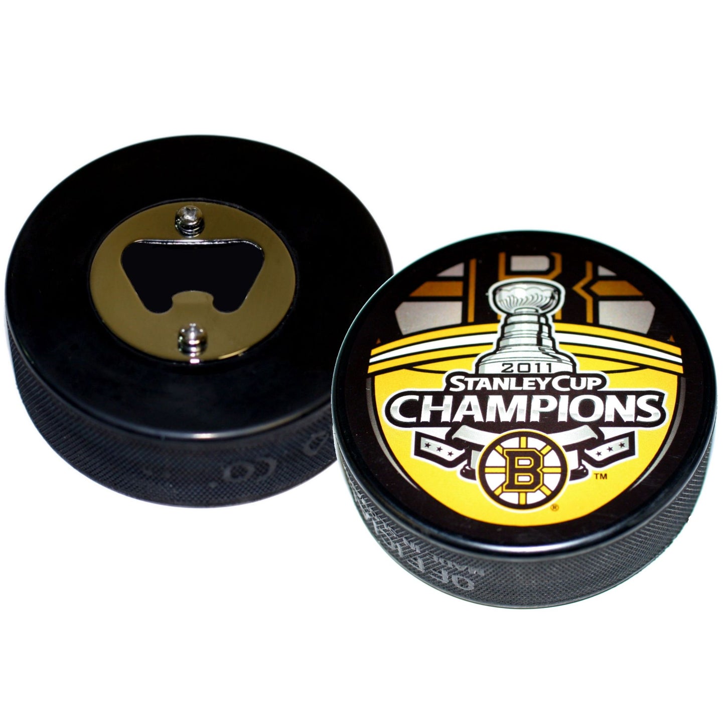 2011 Boston Bruins Stanley Cup Champions Hockey Puck Bottle Opener. Take pride in serving up your favorite drinks with our custom bottle opener. Handcrafted in the USA from an actual licensed collectible hockey puck.