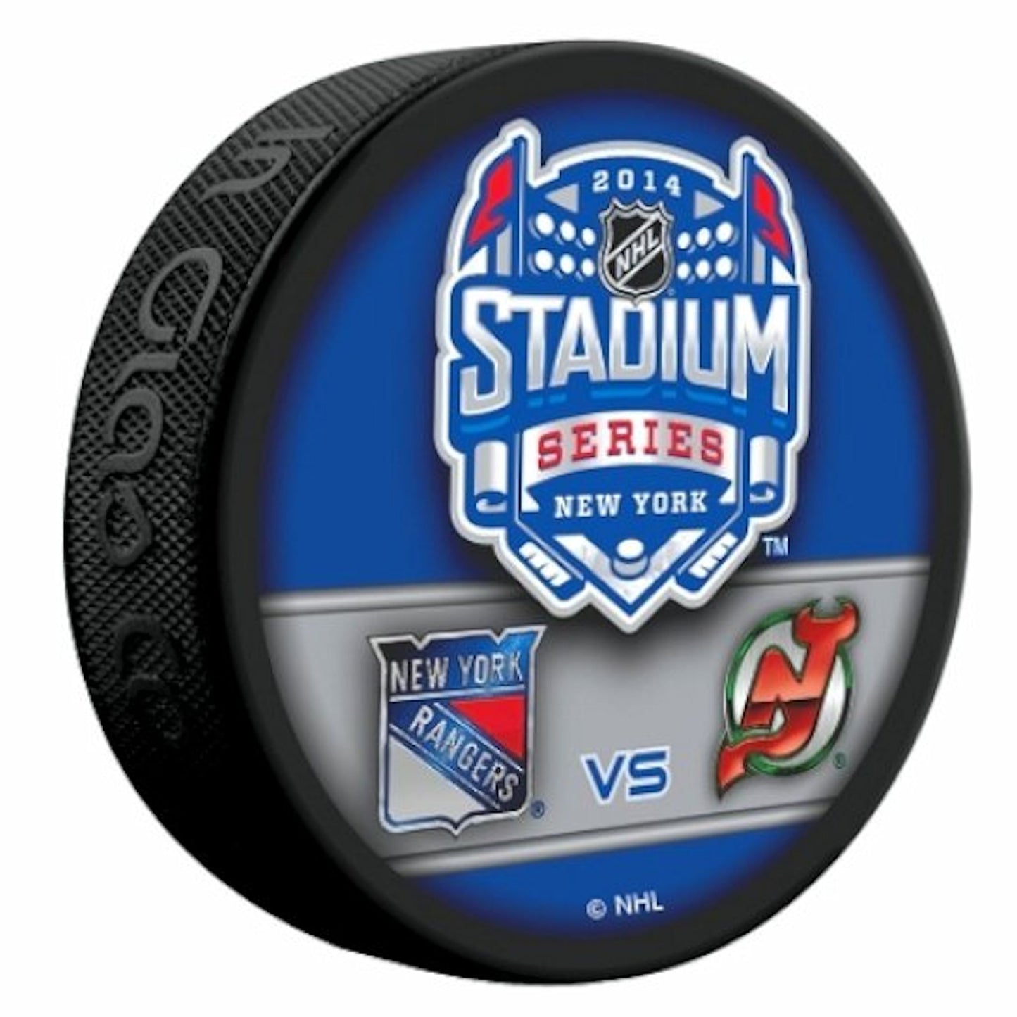 This puck commemorates the 2014 NHL NY Stadium Series held in NY in January, 2014. It featured the NY Rangers vs NJ Devils.