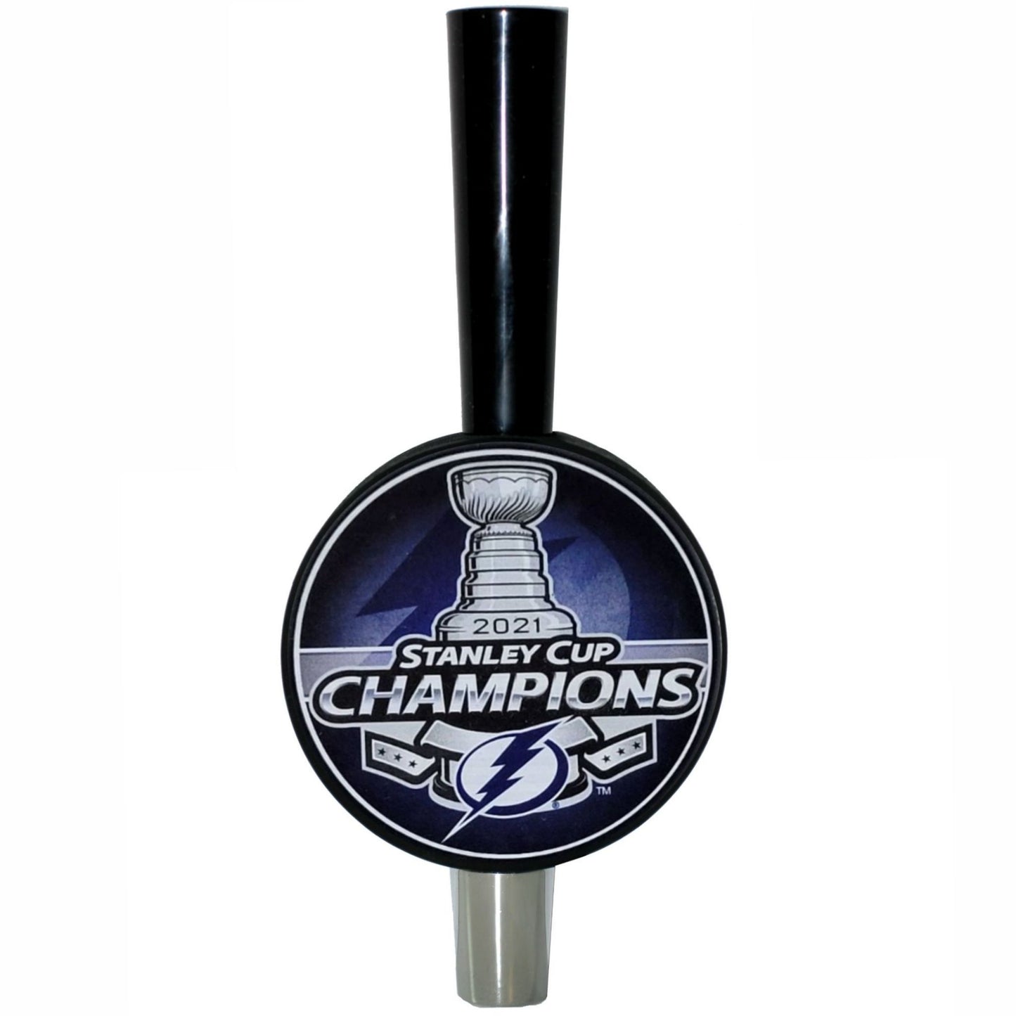 2021 Tampa Bay Lightning Stanley Cup Champions Tall-Boy Hockey Puck Beer Tap Handle. Our Tall-Boy handles have the addition of a 2.75 inch black spire on top. Take pride in serving up your favorite beers with our custom beer tap handle. Handcrafted in the USA from an actual Inglasco collectible hockey puck.