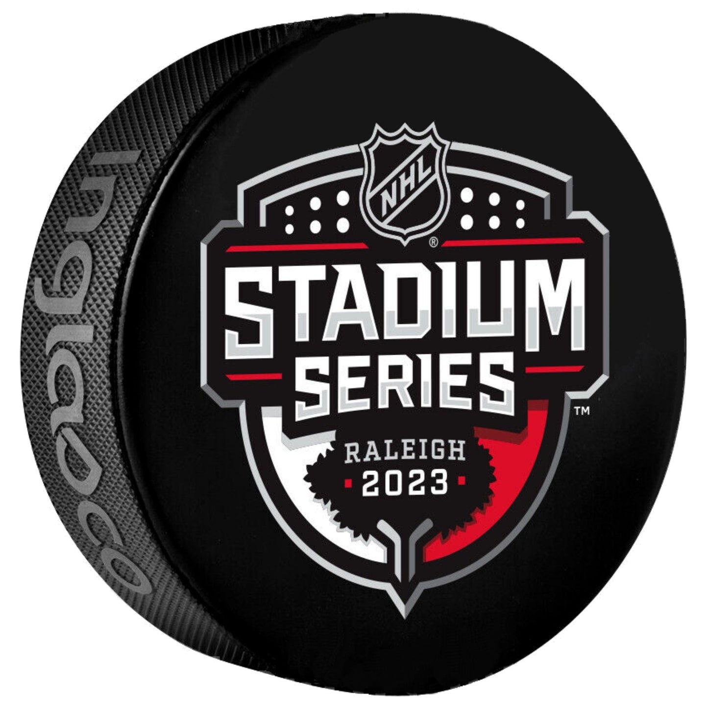 This puck commemorates the 2023 NHL Stadium Series held in Raleigh in February, 2023. It featured the Capitals vs Hurricanes.