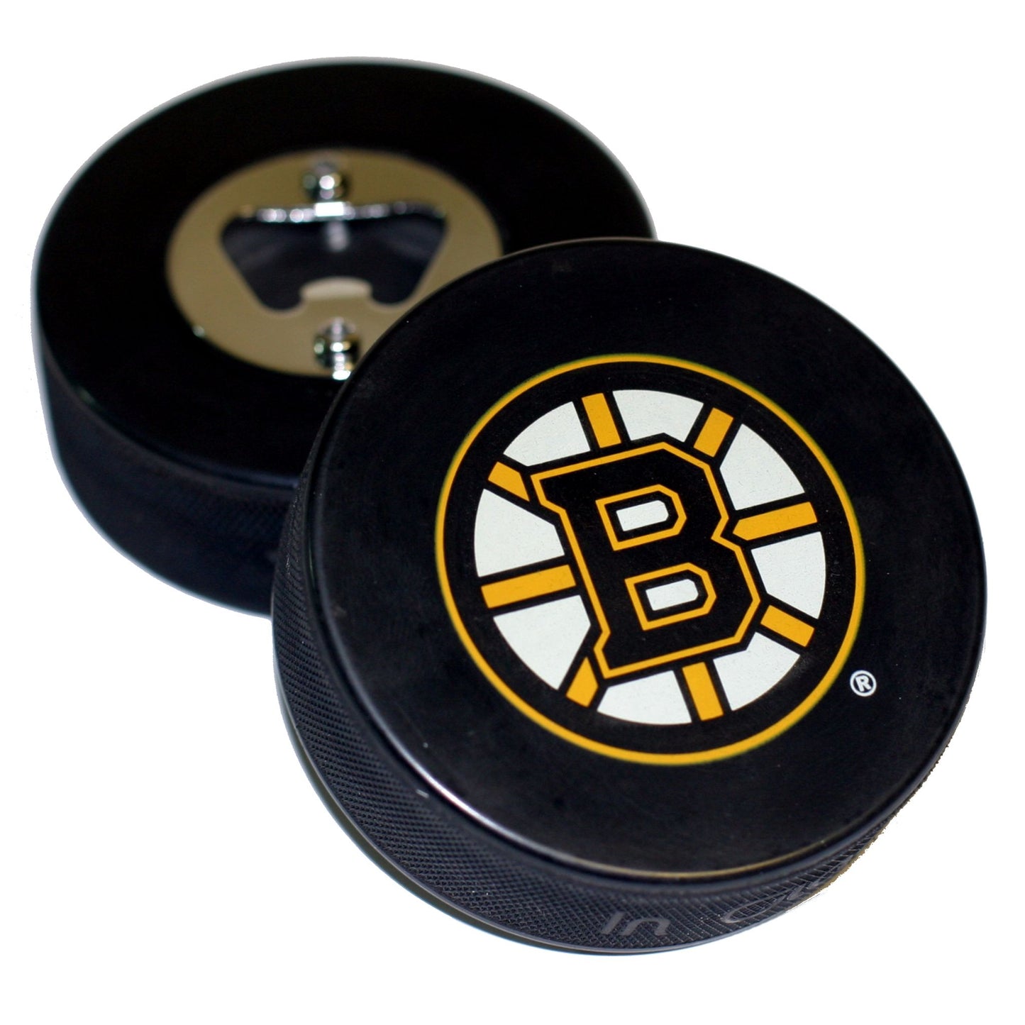 Boston Bruins Basic Series Hockey Puck Bottle Opener. Take pride in serving up your favorite drinks with our custom bottle opener. Handcrafted in the USA from an actual licensed collectible hockey puck.
