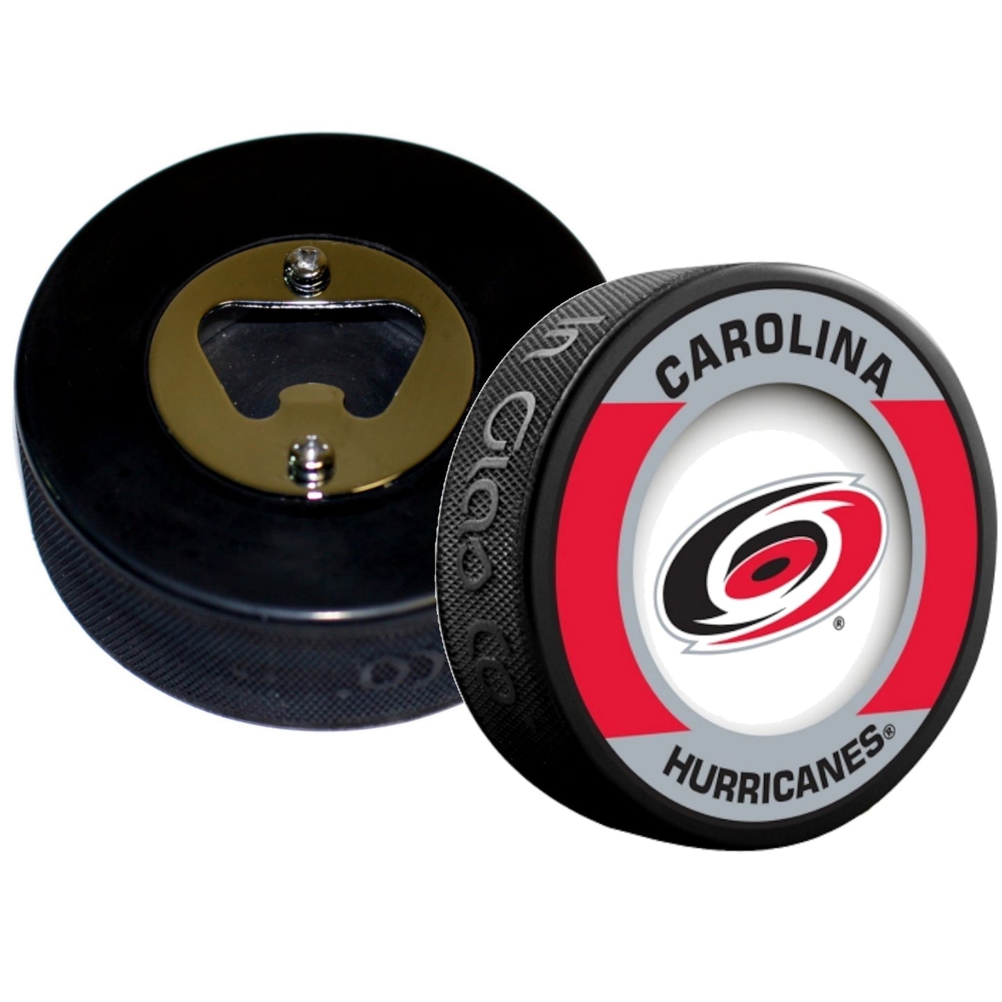Carolina Hurricanes Retro Series Hockey Puck Bottle Opener. Take pride in serving up your favorite drinks with our custom bottle opener. Handcrafted in the USA from an actual licensed collectible hockey puck. It makes a unique and wonderful gift for hockey fans!