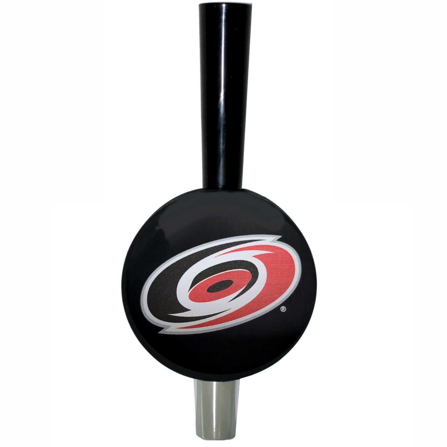 Carolina Hurricanes Tall-Boy Hockey Puck Beer Tap Handle. Our Tall-Boy handles have the addition of a 2.75 inch black spire on top. Take pride in serving up your favorite beers with our custom beer tap handle. Handcrafted in the USA from an actual Inglasco collectible hockey puck. Even if you don't have a beer dispensing system or kegerater, it makes a unique and wonderful gift for hockey fans!