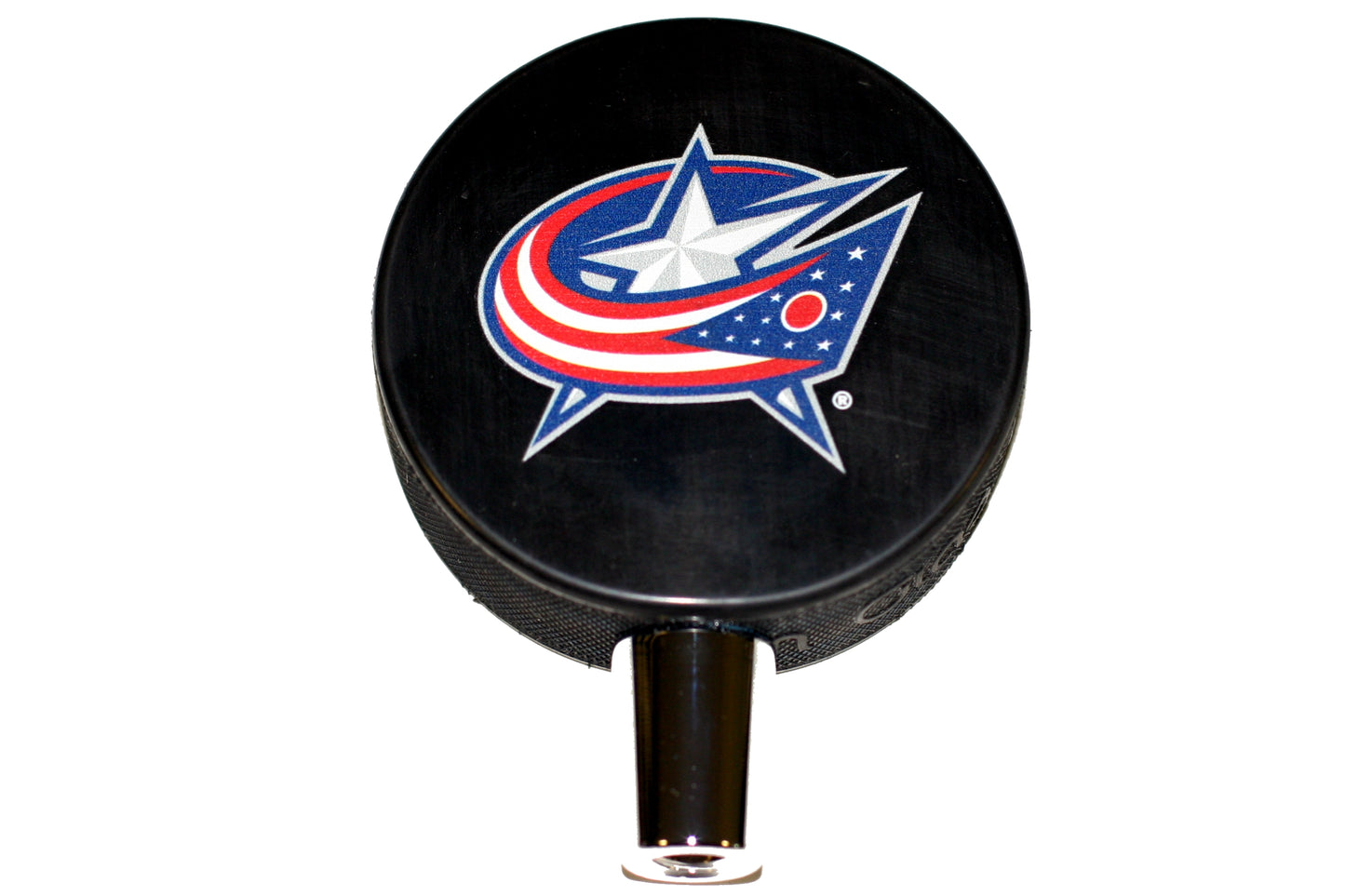 Columbus Blue Jackets Hockey Puck And Cincinnati Reds Baseball Beer Tap Handle Set