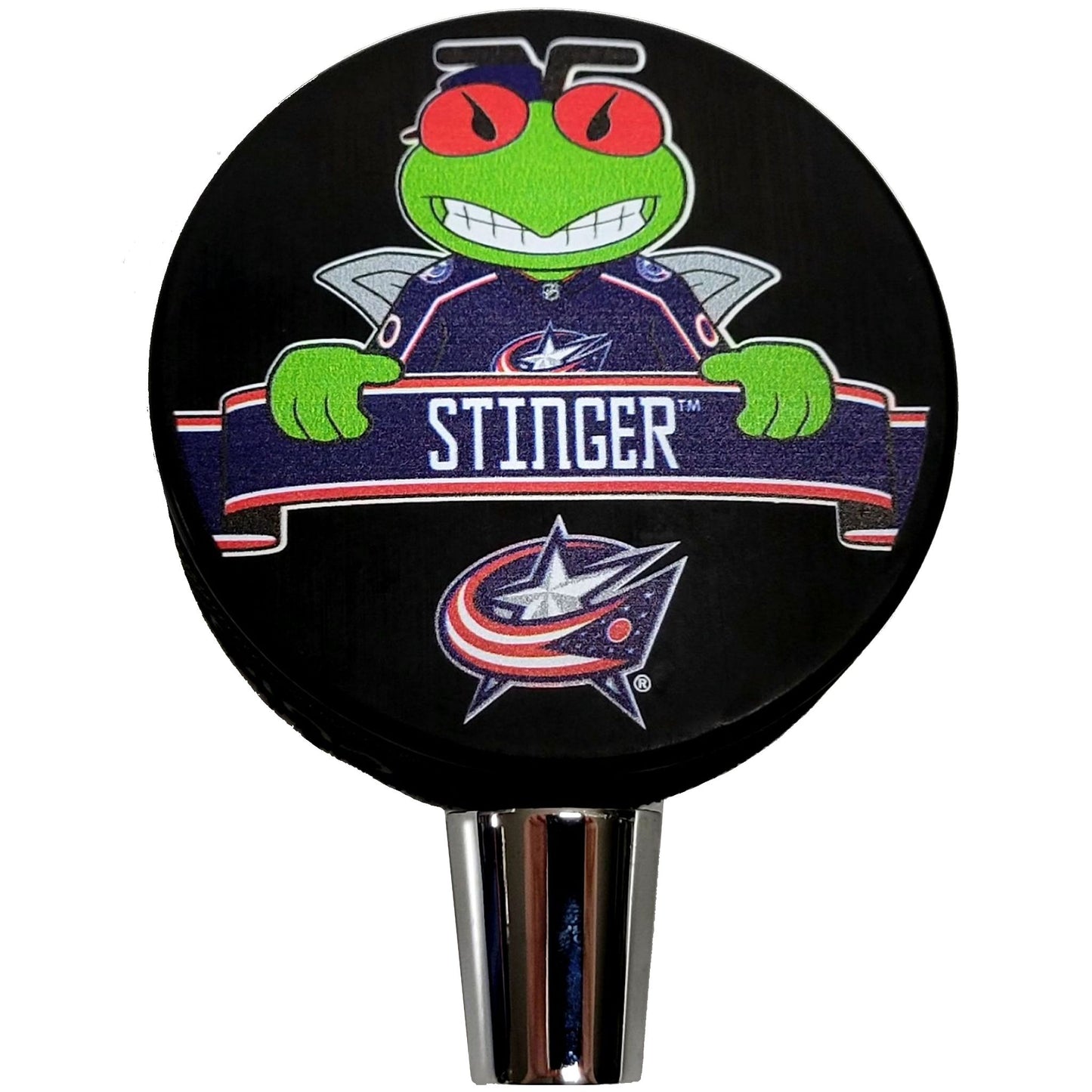 Columbus Blue Jackets Stinger Mascot Hockey Puck Beer Tap Handle. Take pride in serving up your favorite beers with our custom beer tap handle. Handcrafted in the USA from an actual licensed collectible hockey puck.
