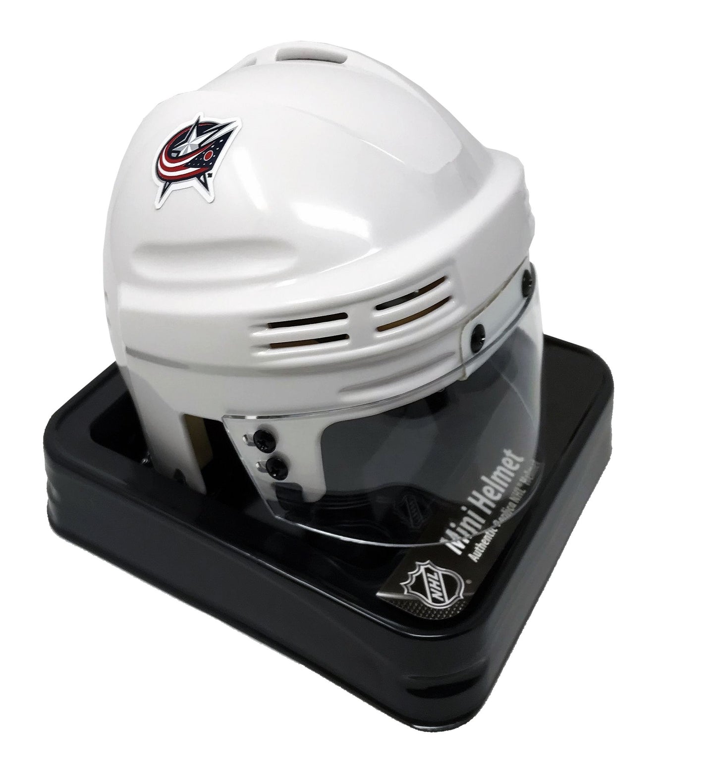 Columbus Blue Jackets White Unsigned Collectible Mini Hockey Helmet. Officially licensed NHL mini helmets are sure to delight the fan or collector. Detailed scale models include visor, ear loops, and interior padding. Clear plastic dome packaging included.