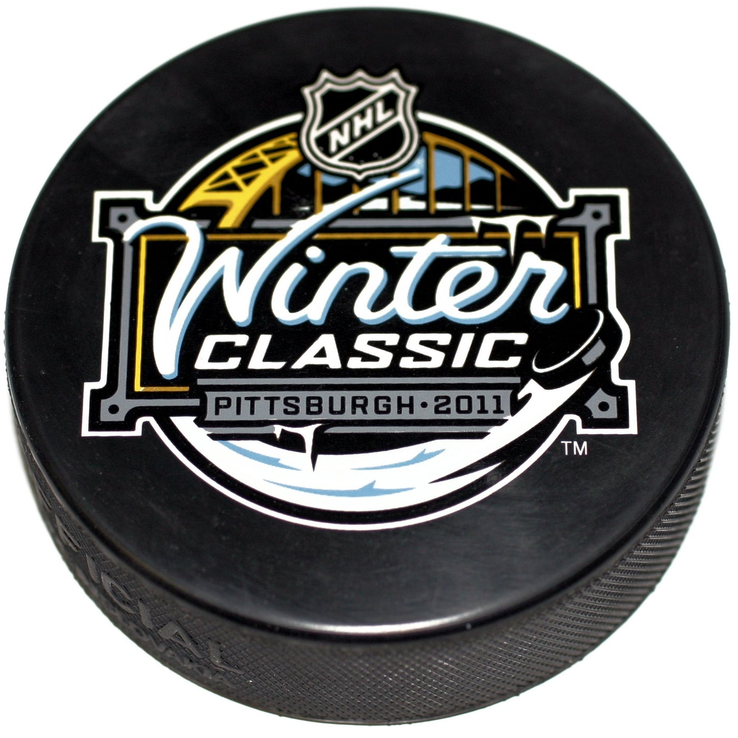 This puck commemorates the 2011 NHL Winter Classic held in Pittsburgh on January first, 2011. It featured the Washington Capitals vs the Pittsburgh Penguins.