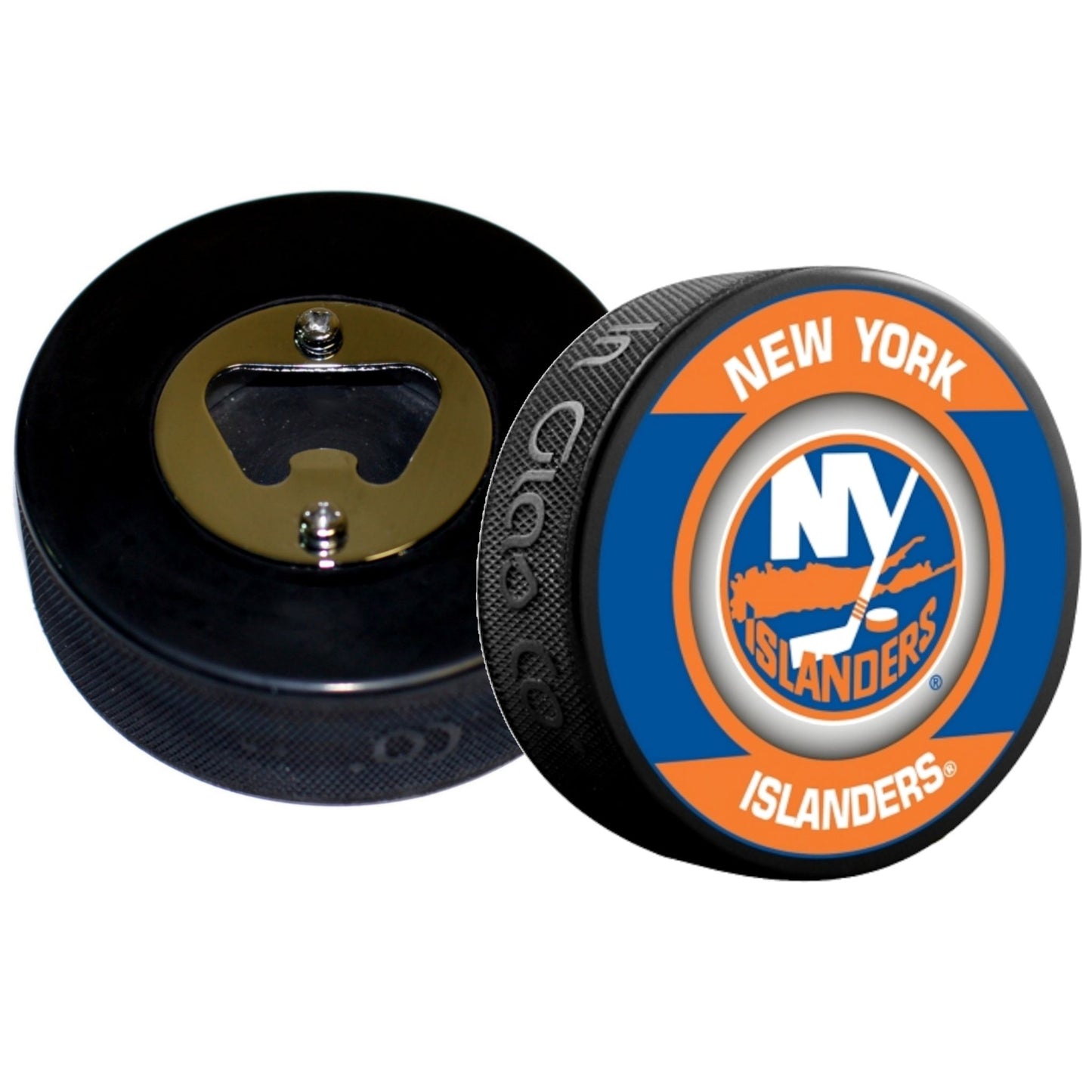 New York Islanders Retro Series Hockey Puck Bottle Opener. Take pride in serving up your favorite drinks with our custom bottle opener. Handcrafted in the USA from an actual licensed collectible hockey puck.