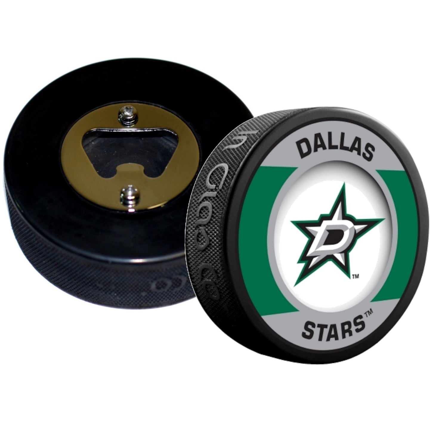 Dallas Stars Retro Series Hockey Puck Bottle Opener. Take pride in serving up your favorite drinks with our custom bottle opener. Handcrafted in the USA from an actual licensed collectible hockey puck.