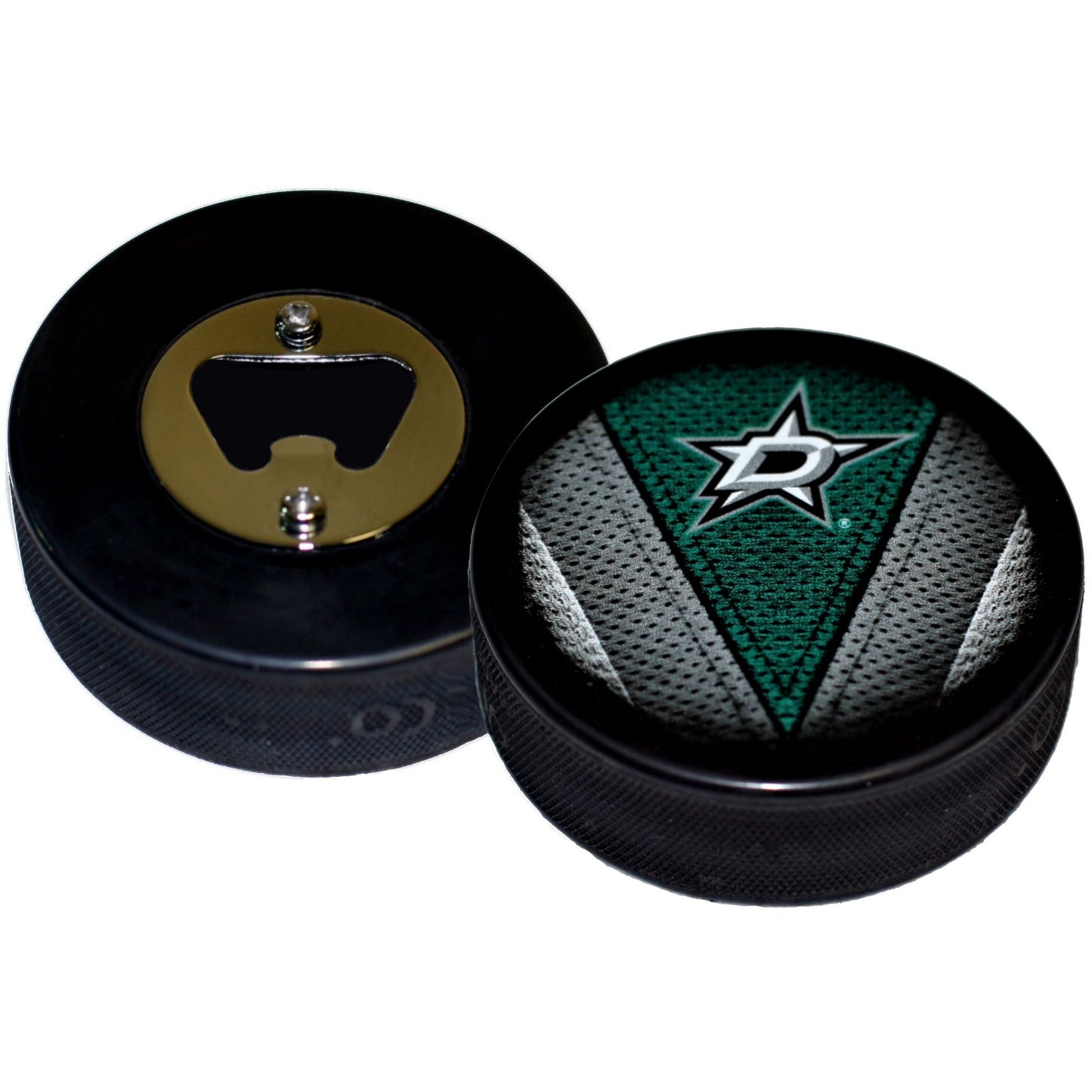 Dallas Stars Stitch Series Hockey Puck Bottle Opener. Take pride in serving up your favorite drinks with our custom bottle opener. Handcrafted in the USA from an actual licensed collectible hockey puck.