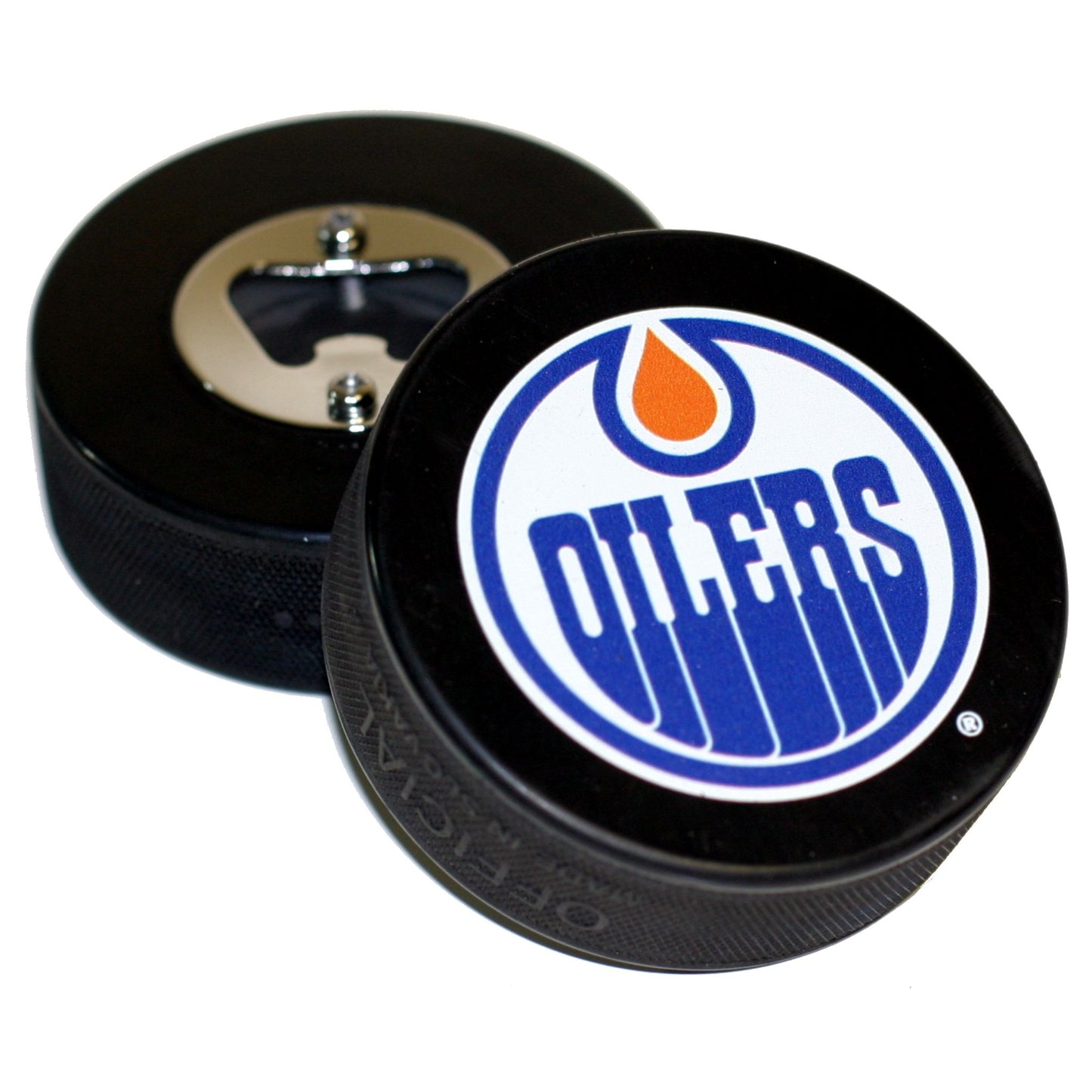 Edmonton Oilers Basic Series Hockey Puck Bottle Opener. Take pride in serving up your favorite drinks with our custom bottle opener. Handcrafted in the USA from an actual licensed collectible hockey puck.