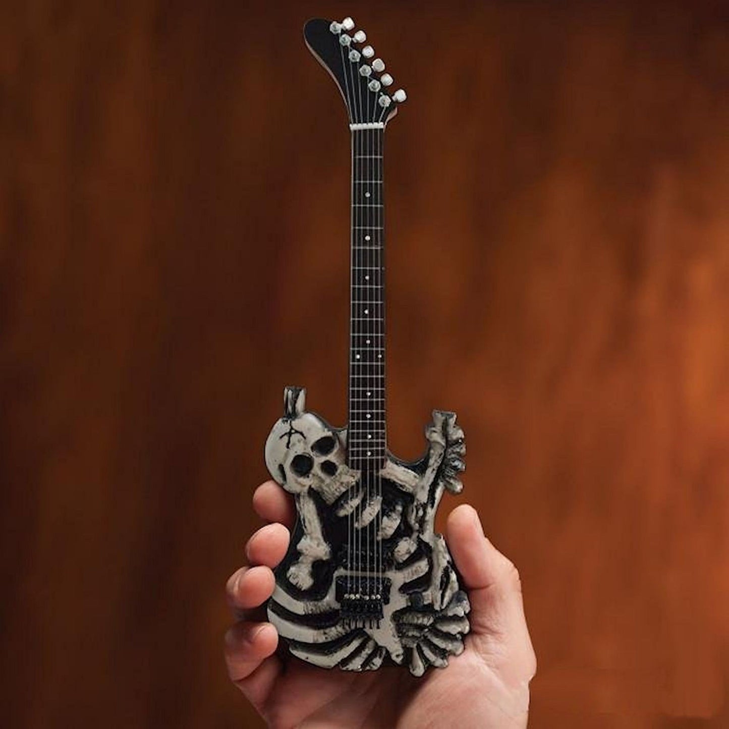 The Famous Signature Skull & Bones Miniature Guitar Replica Collectible - Licensed