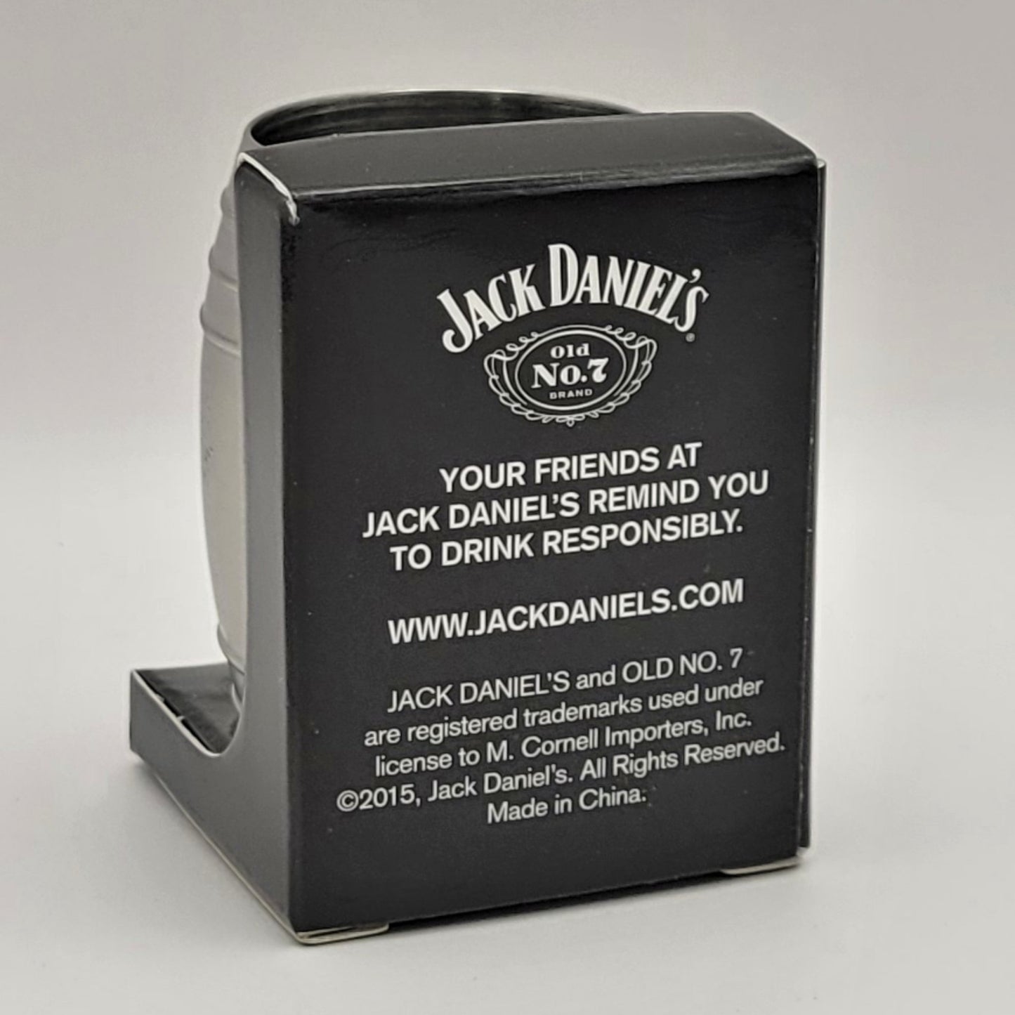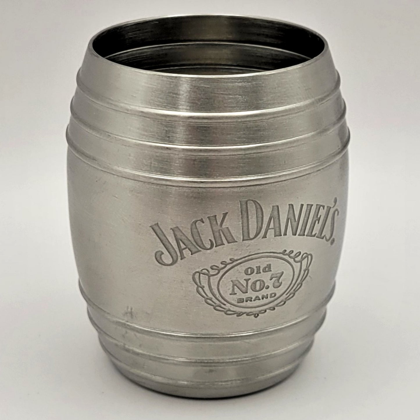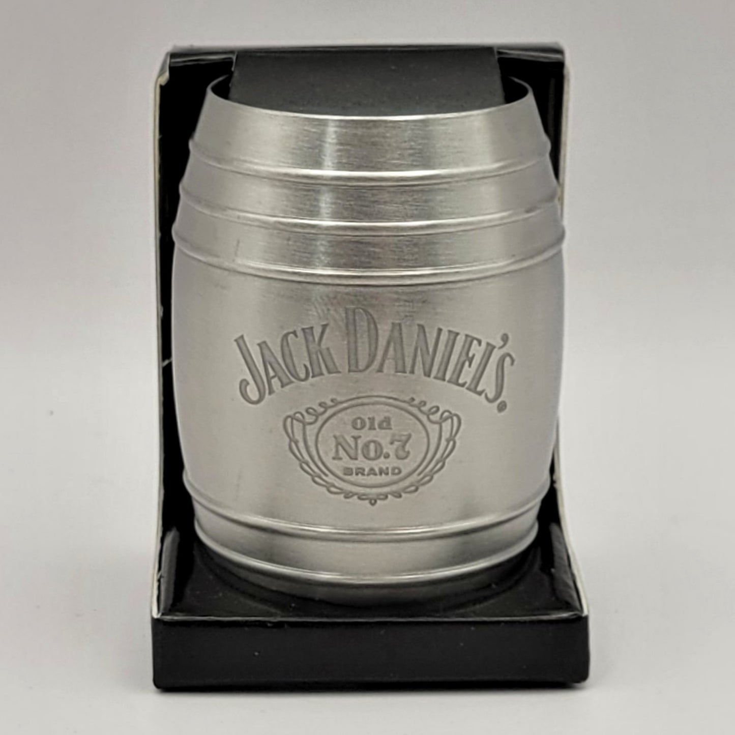 Authentic stainless steel Jack Daniels shot glass. Comes in the shape of a barrel and measures 2.125 inches tall and holds 2 ounces. Officially licensed by Jack Daniels.