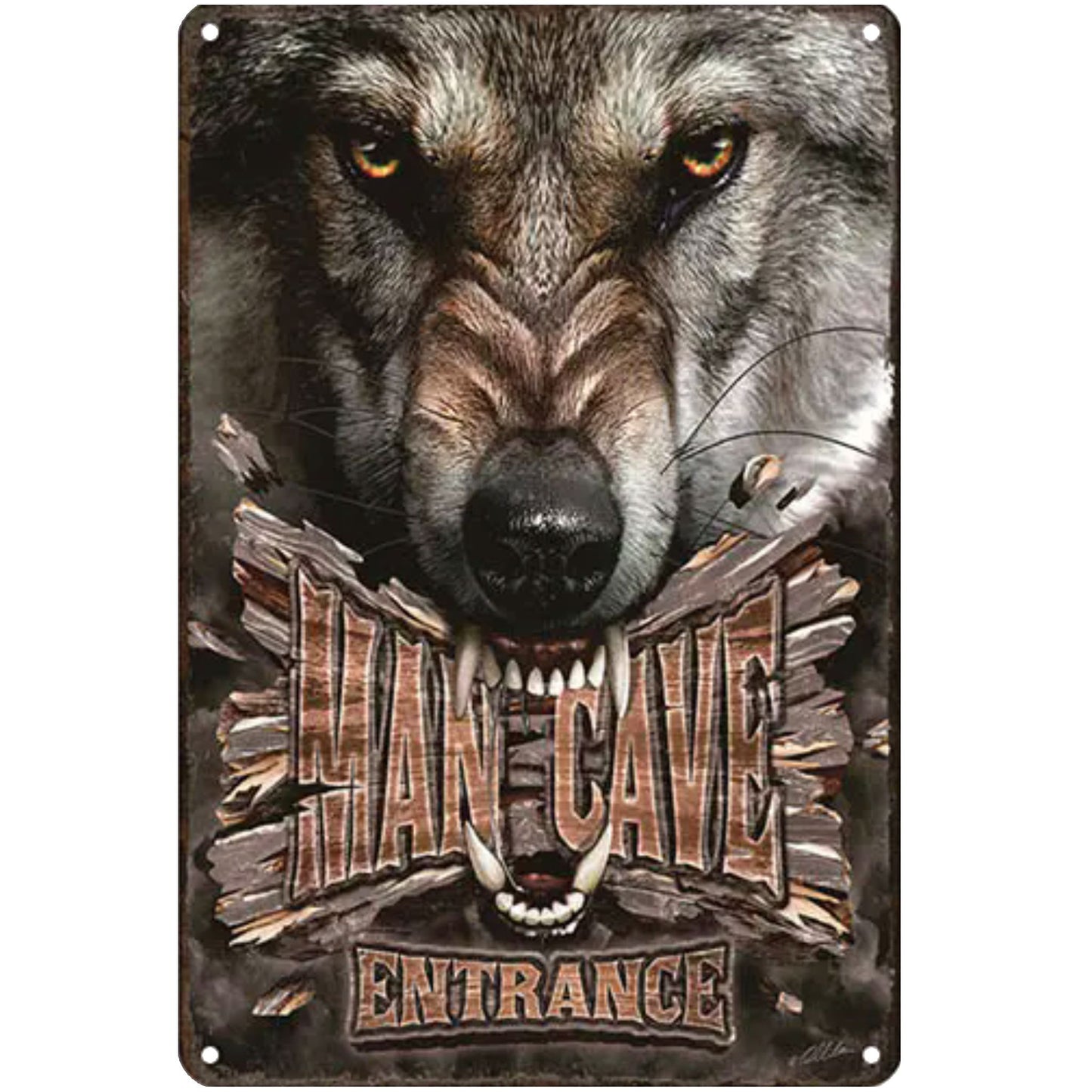The 'Man Cave Entrance' Hunters Series metal bar sign is the perfect addition to any cabin or lodge. Crafted from metal, this sign is designed to be a warning for all who enter.
