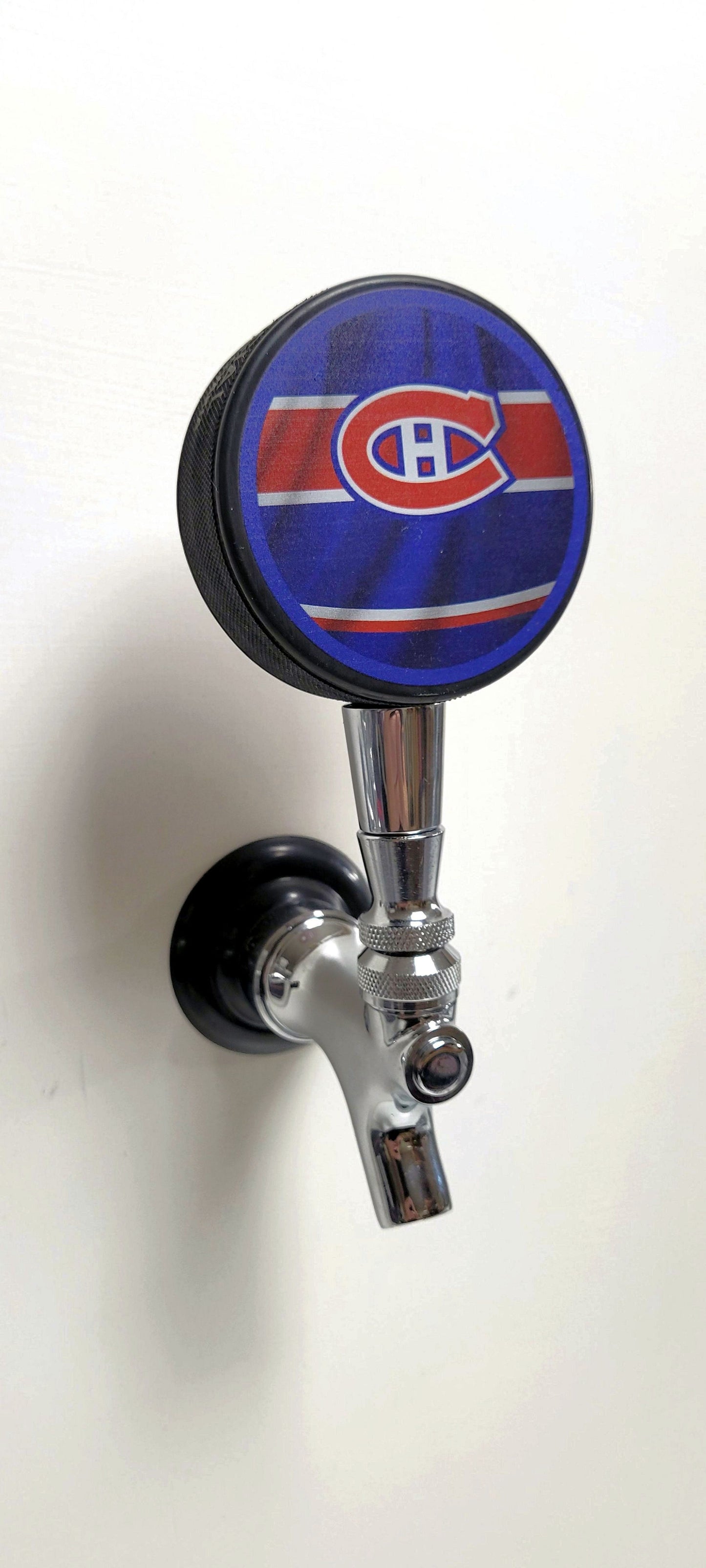 Montreal Canadiens Reverse Series Hockey Puck Beer Tap Handle. Take pride in serving up your favorite beers with our custom beer tap handle. Handcrafted in the USA from an actual licensed collectible hockey puck. Even if you don't have a beer dispensing system or kegerater, it makes a unique and wonderful gift for hockey fans!