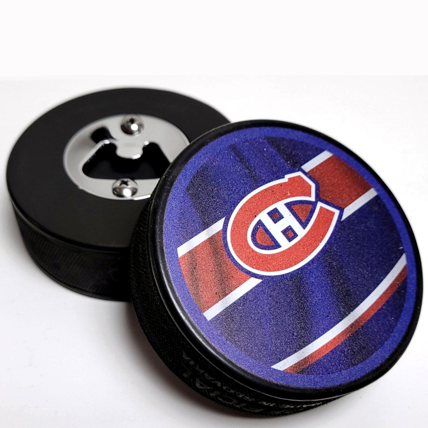 Montreal Canadiens Reverse Series Hockey Puck Bottle Opener. Take pride in serving up your favorite drinks with our custom bottle opener. Handcrafted in the USA from an actual licensed collectible hockey puck.