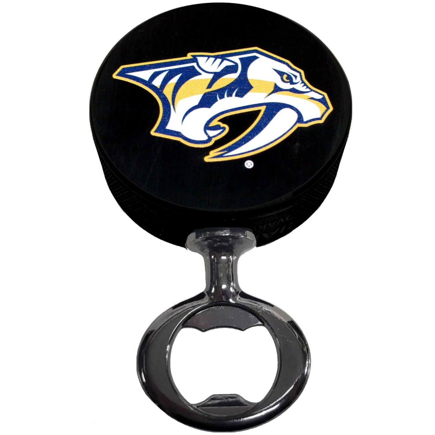 Nashville Predators Black Nickel Colored FULCRUM Series Hockey Puck Bottle Opener. Take pride in serving up your favorite drinks with our custom hockey puck bottle opener. Handcrafted in the USA from an actual licensed hockey puck