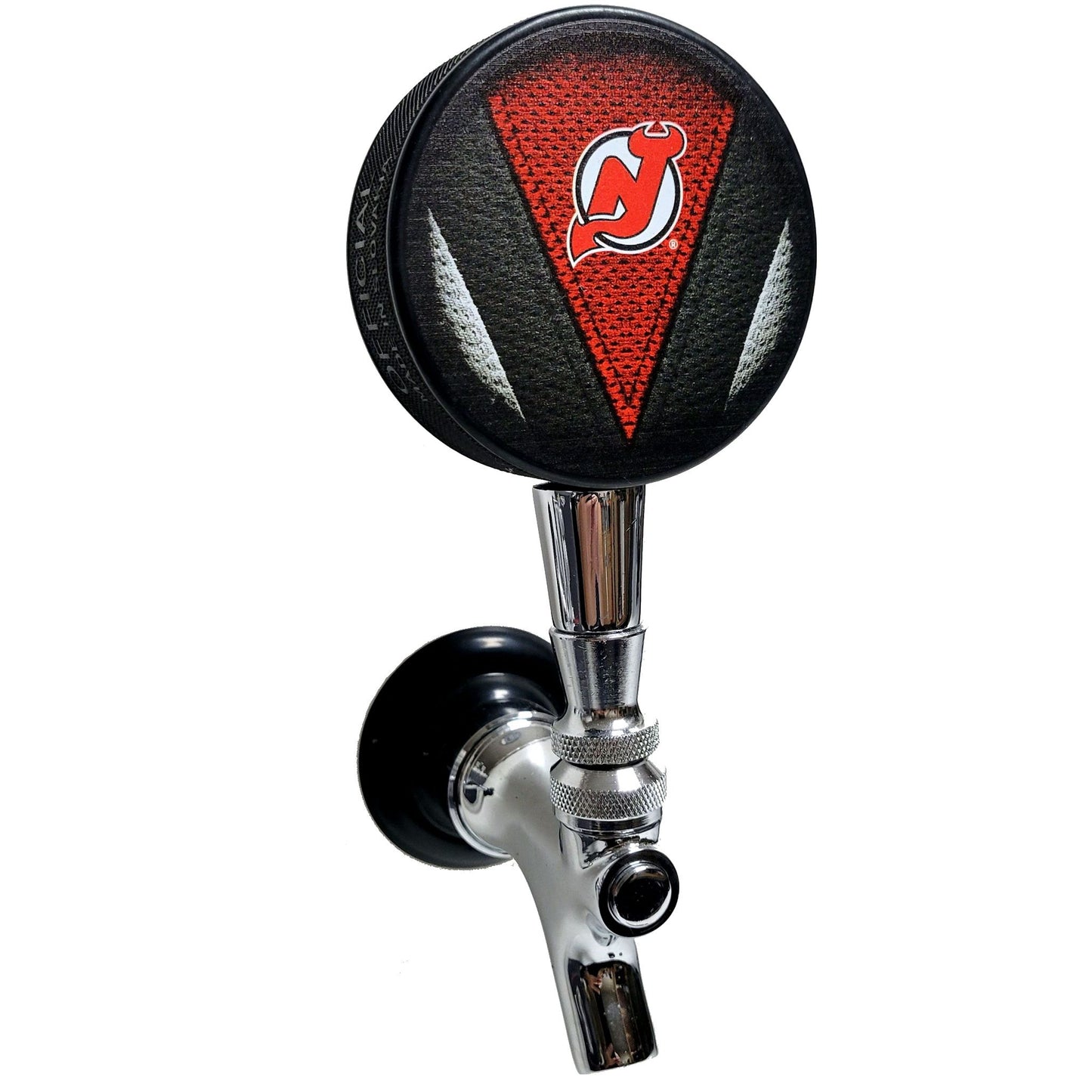 New Jersey Devils Stitch Series Hockey Puck Beer Tap Handle. Take pride in serving up your favorite beers with our custom beer tap handle. Handcrafted in the USA from an actual licensed collectible hockey puck. Even if you don't have a beer dispensing system or kegerater, it makes a unique and wonderful gift for hockey fans!