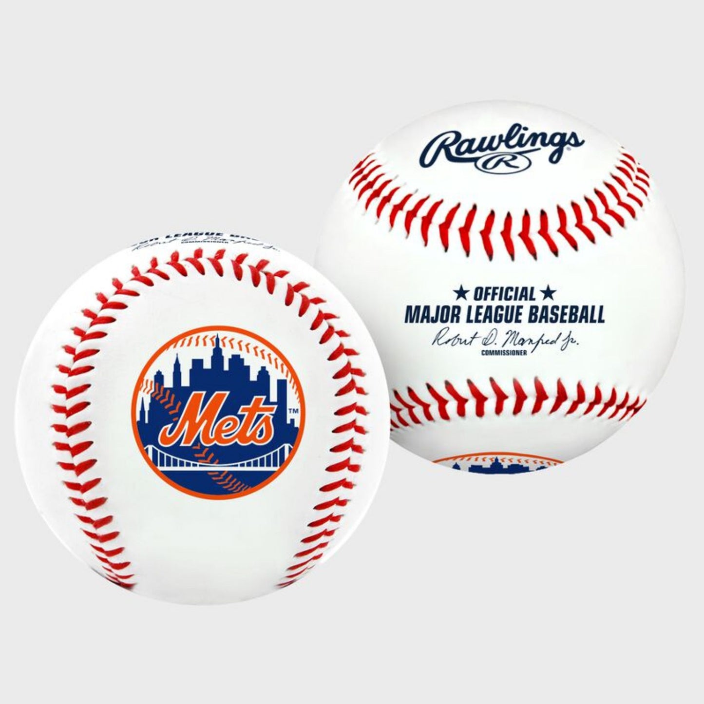 This licensed Rawlings replica baseball has a composite leather cover that features the New York Mets team logo and the commissioner's signature on the ball.