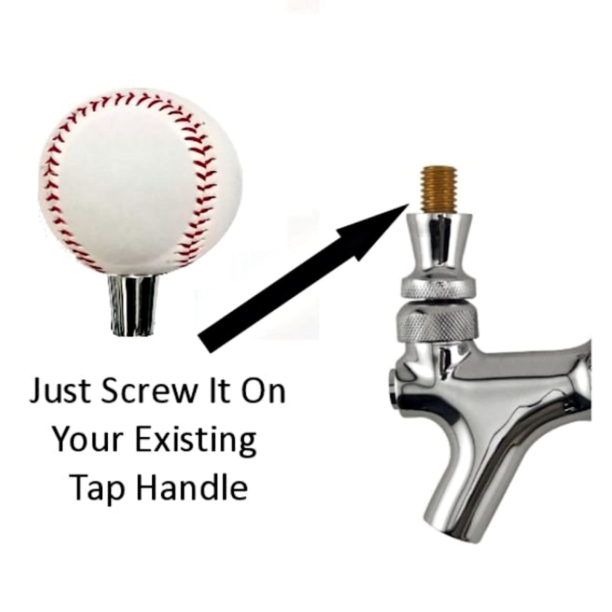 - Baseball tap handle measures 3.5" H x 2.85" W x 2.85" D