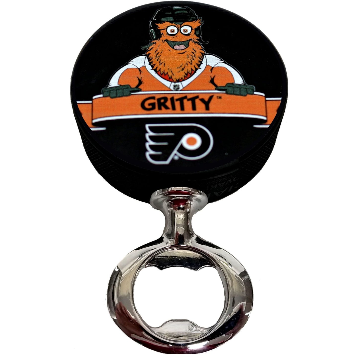 Philadelphia Flyers GRITTY Mascot FULCRUM Series Hockey Puck Bottle Opener. Take pride in serving up your favorite drinks with our custom hockey puck bottle opener. Handcrafted in the USA from an actual licensed hockey puck