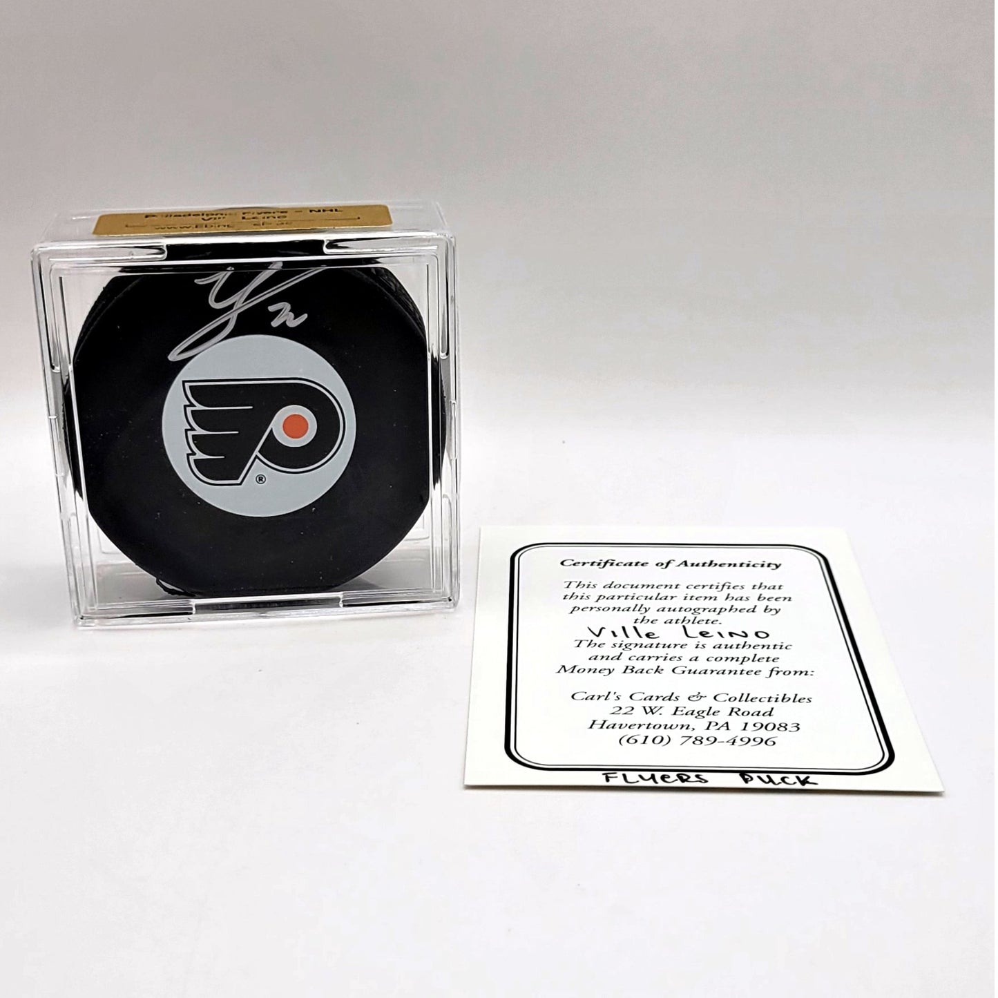 Philadelphia Flyers Ville Leino Autographed Hockey Puck With COA.