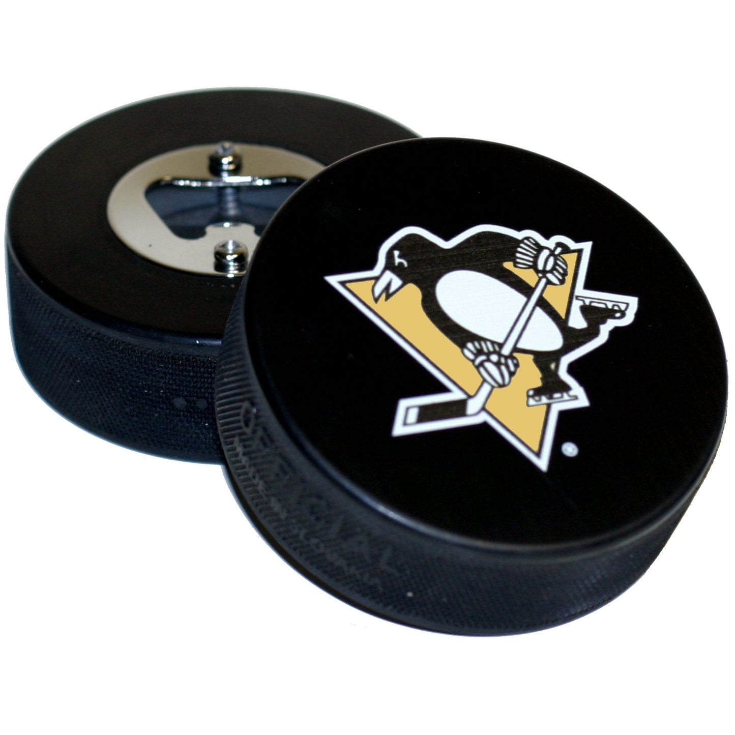 Pittsburgh Penguins Basic Series Hockey Puck Bottle Opener. Take pride in serving up your favorite drinks with our custom bottle opener. Handcrafted in the USA from an actual licensed collectible hockey puck. It makes a unique and wonderful gift for hockey fans!