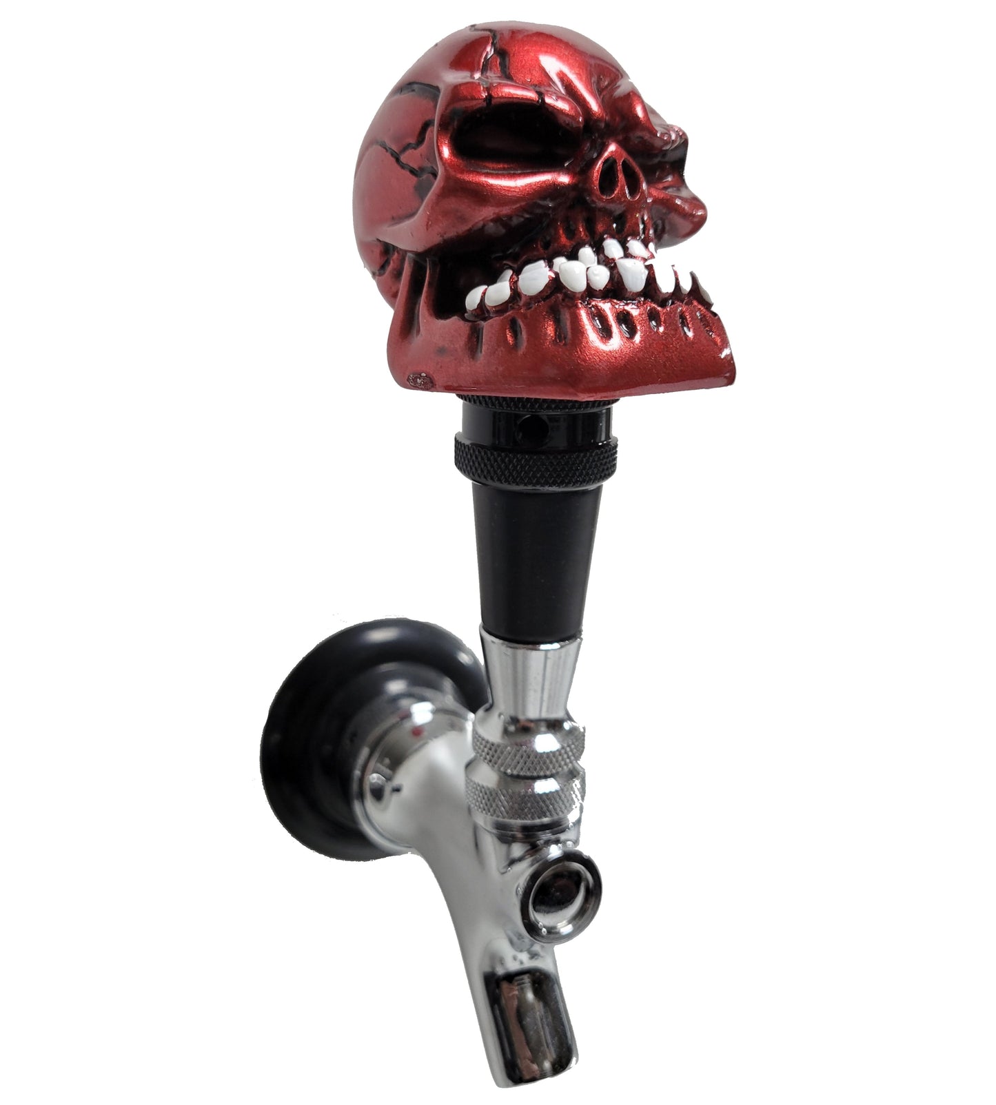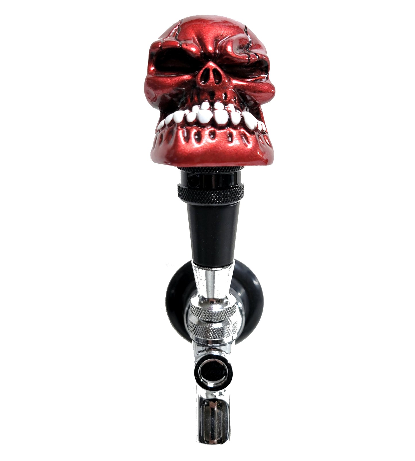 Red Angry Skull Beer Tap Handle. Take pride in serving up your favorite beers with our custom beer tap handle. Handcrafted in the USA from an angry resin skull.