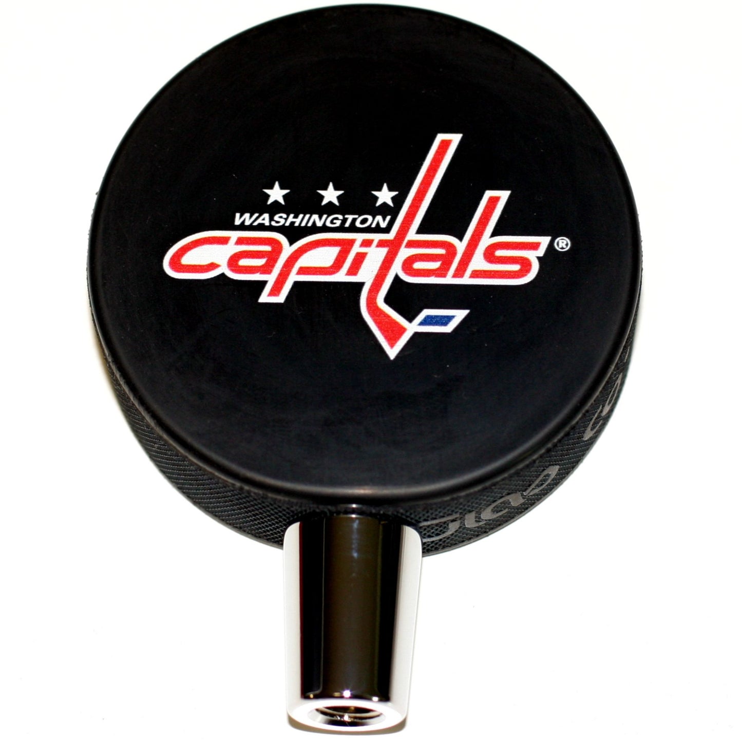 Washington Capitals Basic Series Hockey Puck Beer Tap Handle. Take pride in serving up your favorite beers with our custom beer tap handle. Handcrafted in the USA from an actual licensed collectible hockey puck. Even if you don't have a beer dispensing system or kegerater, it makes a unique and wonderful gift for hockey fans!